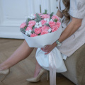 Новогодний букет из роз Кахала, нобилиса и шаров в упаковке