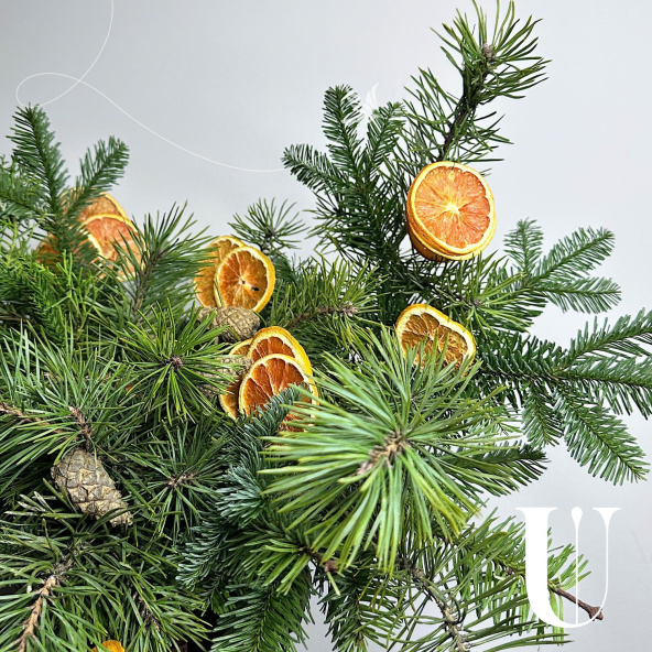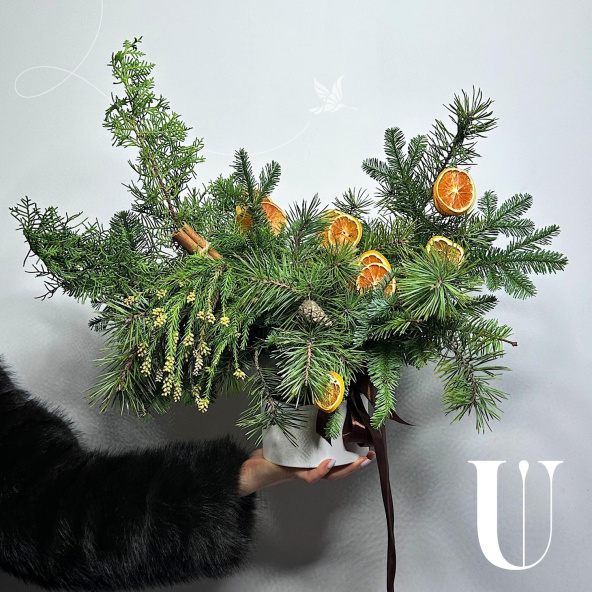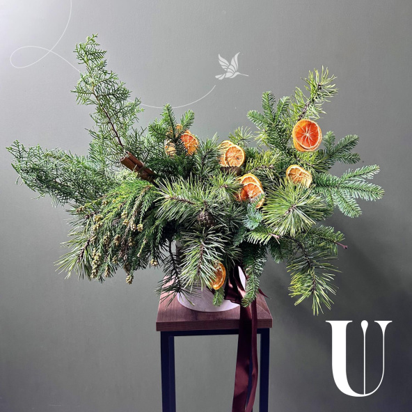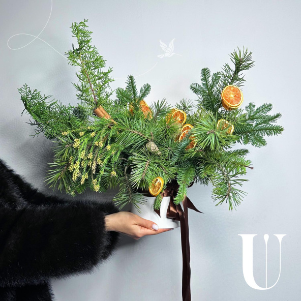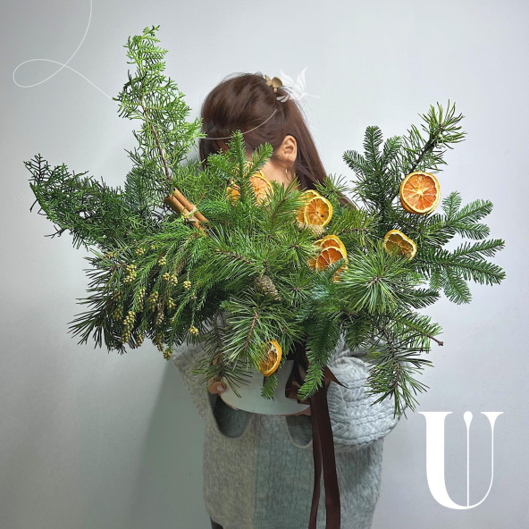 Коробка с праздничным настроением! Ароматный хвойный микс, натуральные украшения (подходит для дома с животными - эко-безопасна). Будет радовать до следующего года, просто подливайте немного воды в губку.