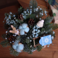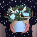- Круглая коробка с зимней хвойной композицией