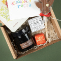 Подарочный набор из имбирного пряника, фруктового чая, шоколада ручной работы, ягодного конфитюра и открытки