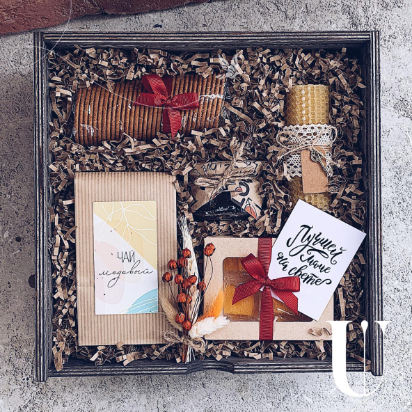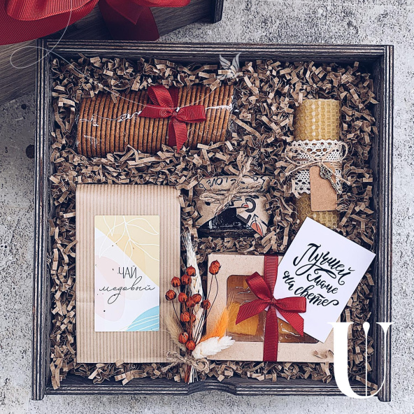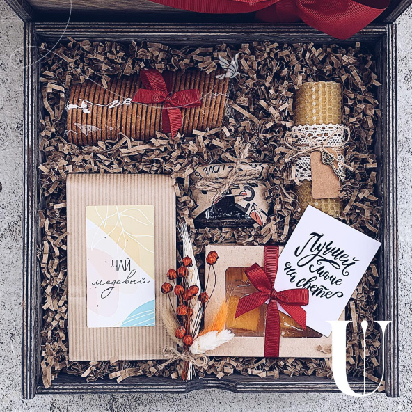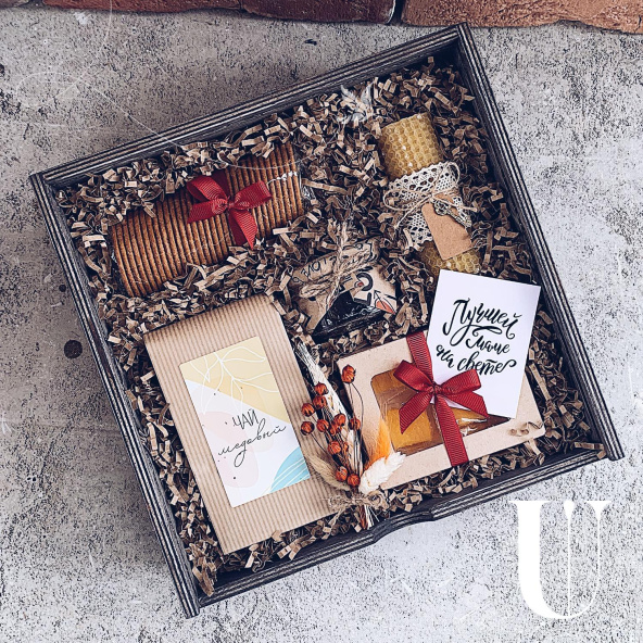 Согревающий и ароматный чай, который подарит маме минуты блаженства. Хрустящее и пряное печенье, которое идеально подойдет к чаю. Изысканный джем с ярким вкусом клубники и нотками шампанского. Свеча с теплым и уютным ароматом меда, которая создаст расслабляющую атмосферу. Сладкие и освежающие конфетки, которые порадуют маму своим экзотическим вкусом.