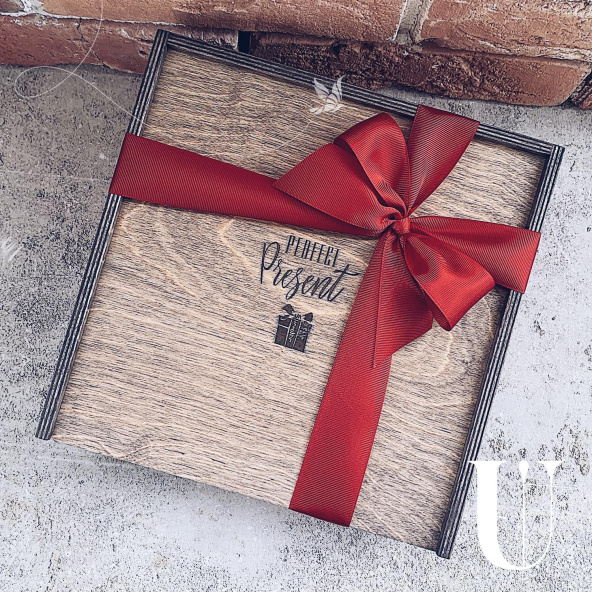 - Деревянный ящик ручной работы с бантом из репсовой ленты - 1 шт