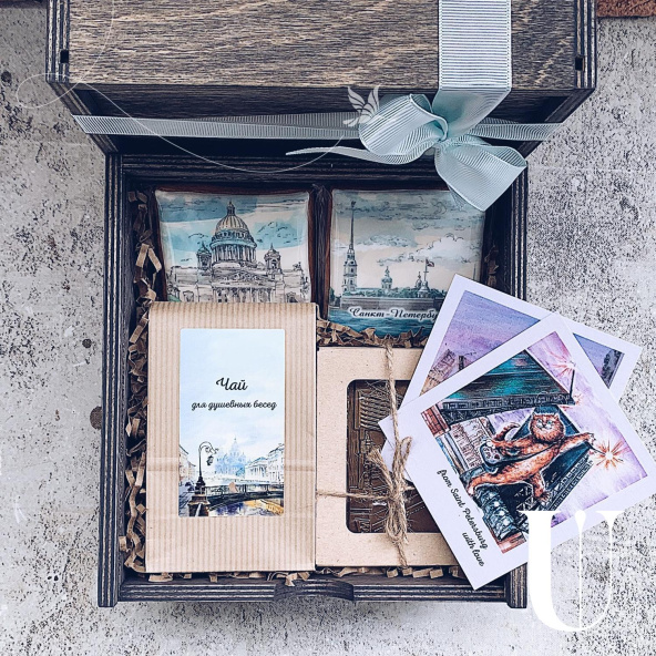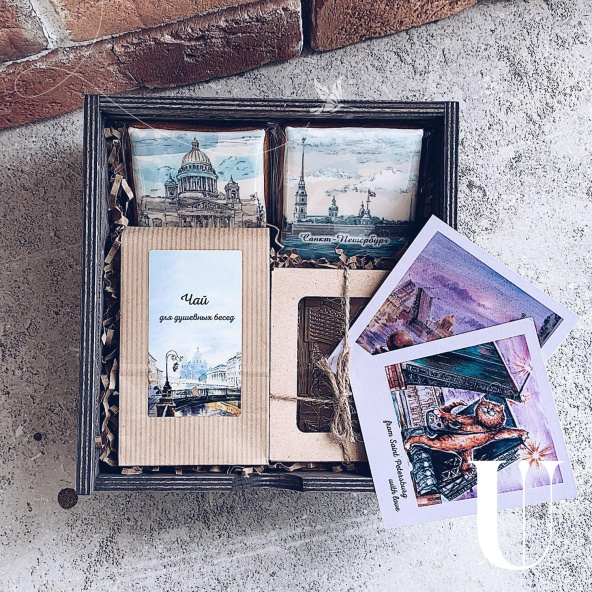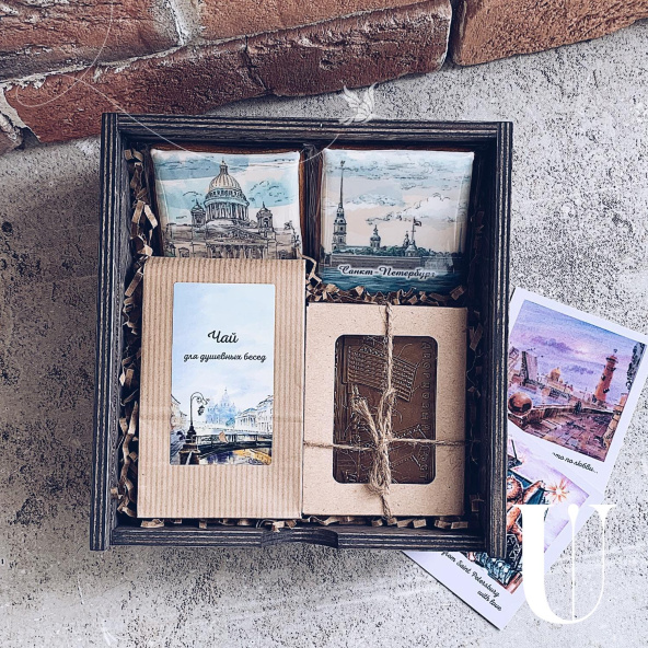Атмосферная коробочка с самыми вкусными и оригинальными компонентами, произведенными в самом сердце Северной Столицы, подарят бурю приятных эмоций получателю подарка!