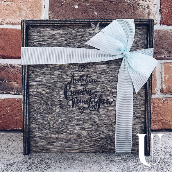 - Деревянный ящик ручной работы "С любовью из Санкт-Петербурга" с бантом из репсовой ленты