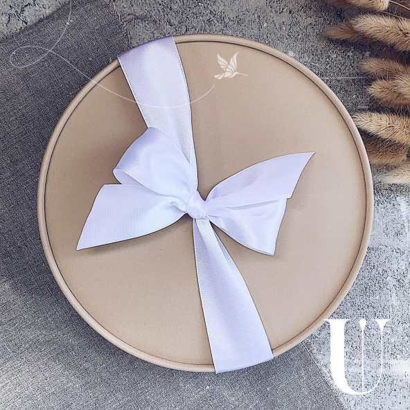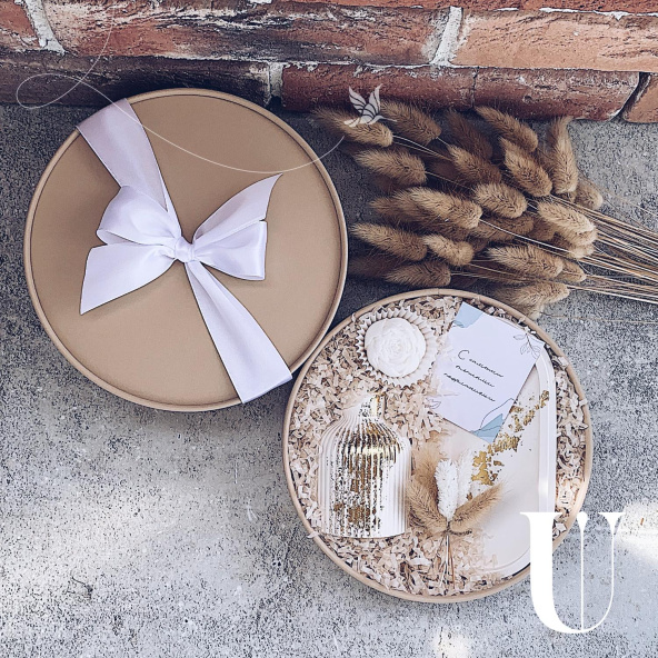 - Круглая коробка d21см с бантом из сатиновой ленты