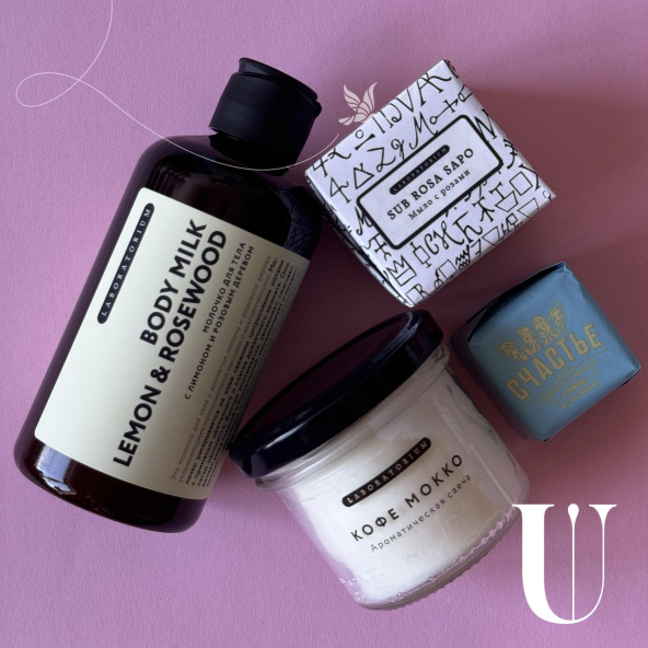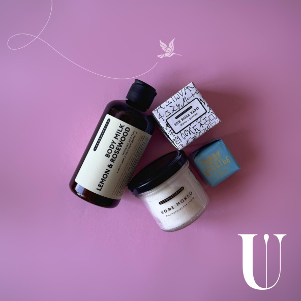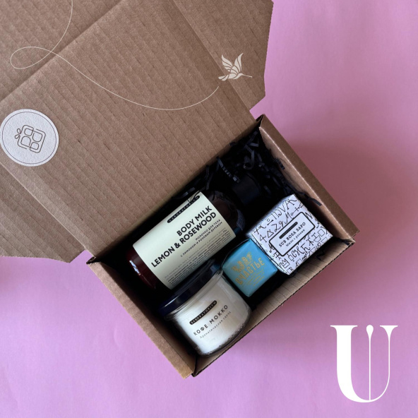 Бокс с доставкой из маски для лица, мыла, крема, соли для ванной, фирменной свечи