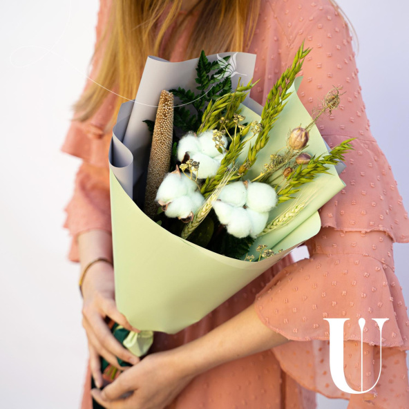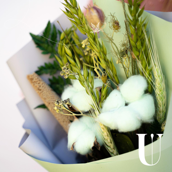 - Букет из сухоцветов в салатовом цвете