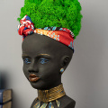 Интерьерная композиция из гипса и декоративного мха. Африканка с прической из зелёного мха.