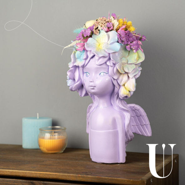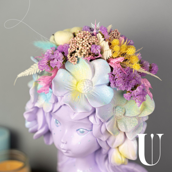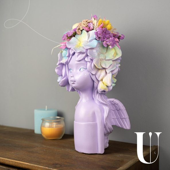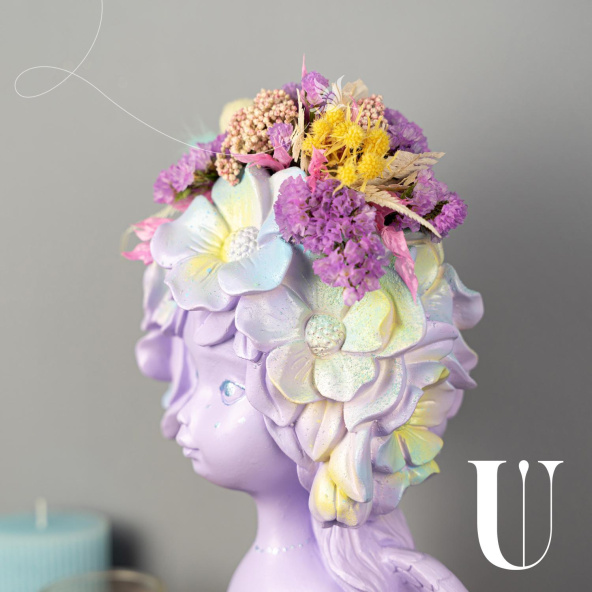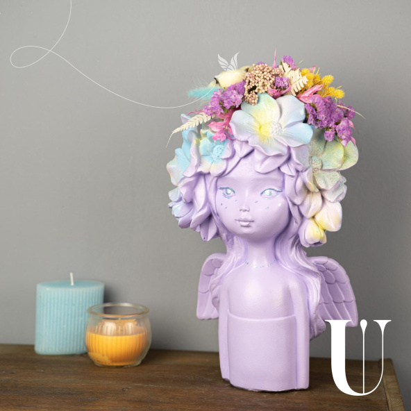 - Интерьерная композиция из гипса с добавлением сухоцветов. Фигурка цветочной феи раскрашена в ручную