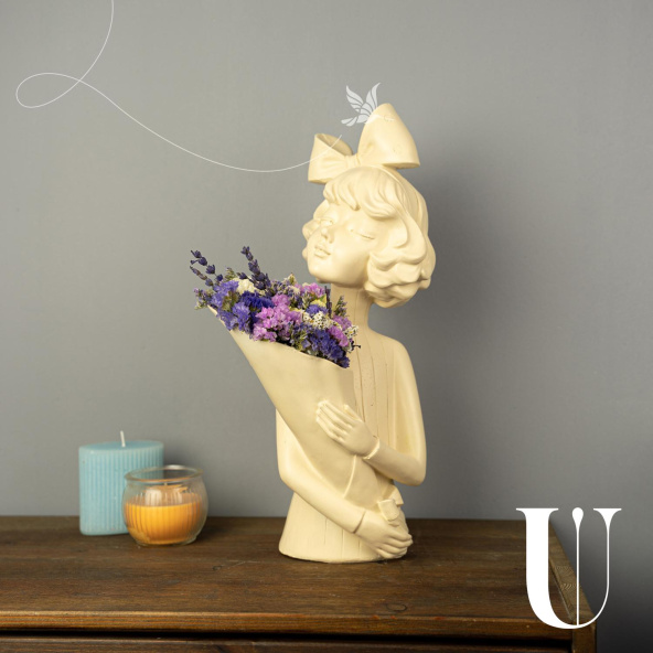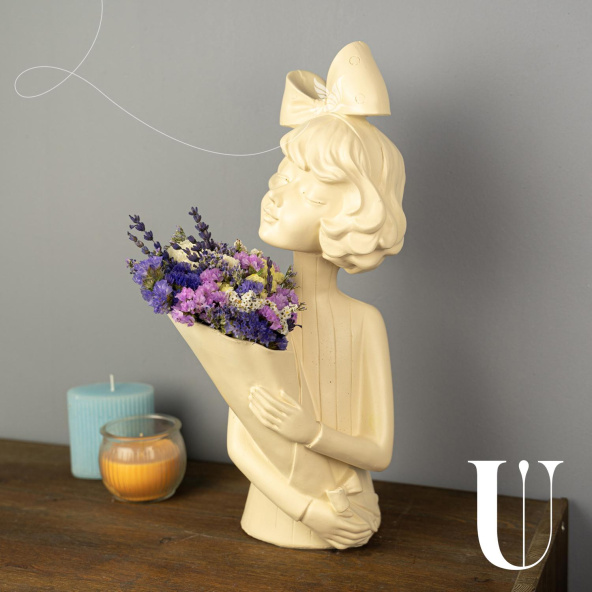 Гипсовая интерьерная фигурка с букетом из сухоцветов. В составе: статица