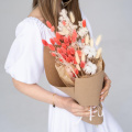 Букет сухоцветов в сиреневой гамме из гортензии, хлопка и папоротника в синей упаковке