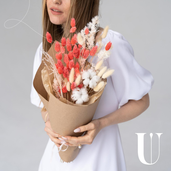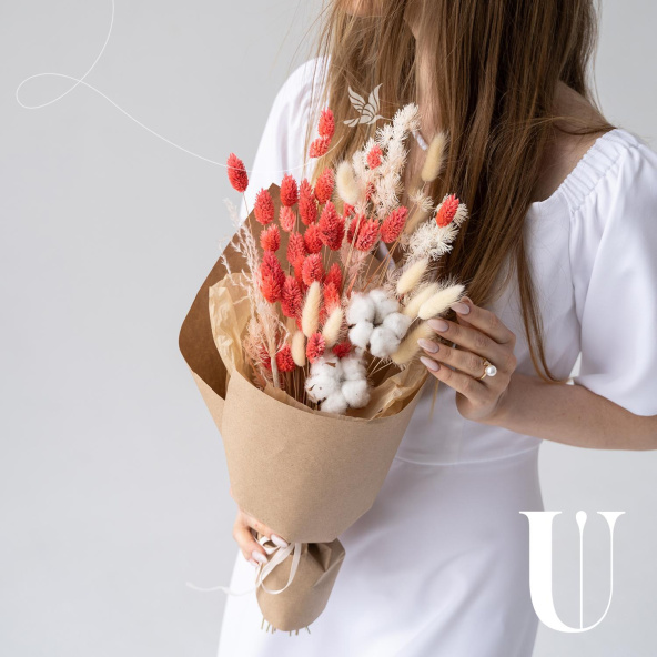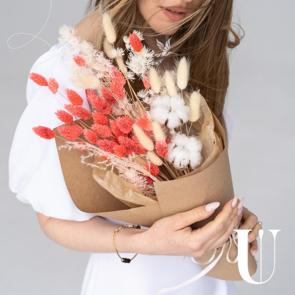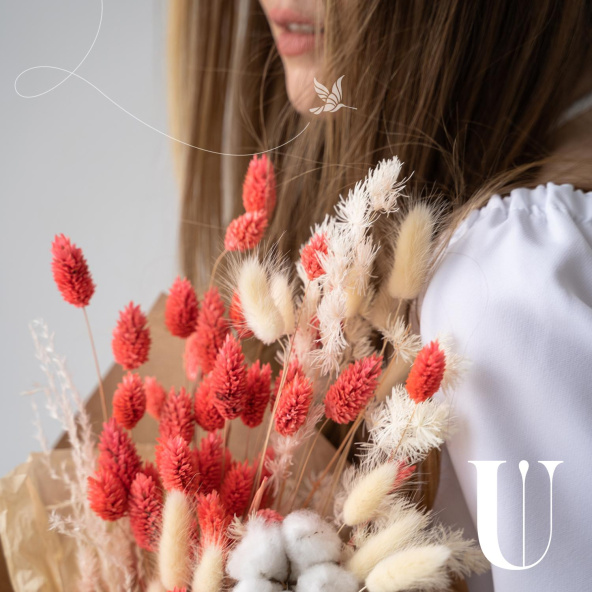 Осенний букет с лагурусом, хлопком, канареечником и аспарагусом