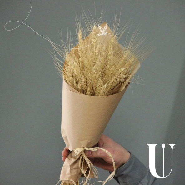 Стильный моно букет из пшеницы, в крафтовой упаковке