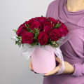 Стильная классика! Красные розы в шляпной коробке