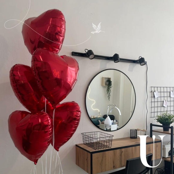 Фонтан из гелиевых фольгированных шаров-сердец, 5 шт.